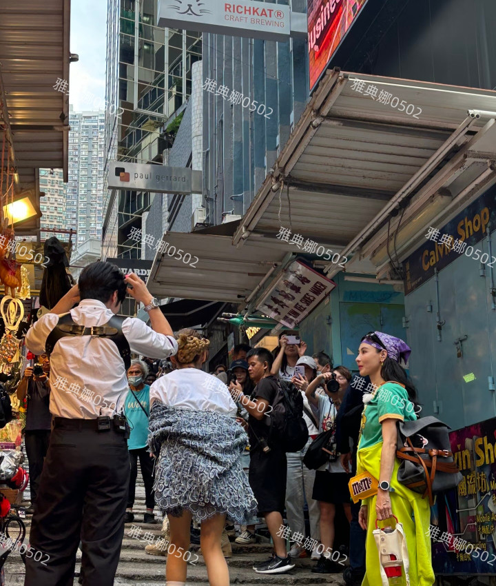 逛街到中环的时候,看到有很多明星和工作人员在拍摄,围观的粉丝则忙着拍自己的偶像, 以为是TVB在拍剧,没想到居然是《一路繁花2》来香港了,人群中第一眼就看到了张柏芝,穿了一身荧光绿的她实在是太显眼了。