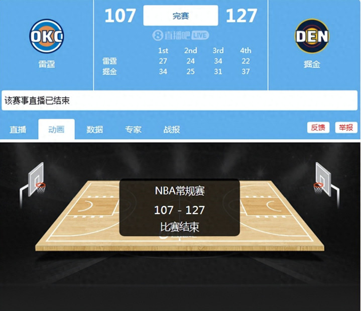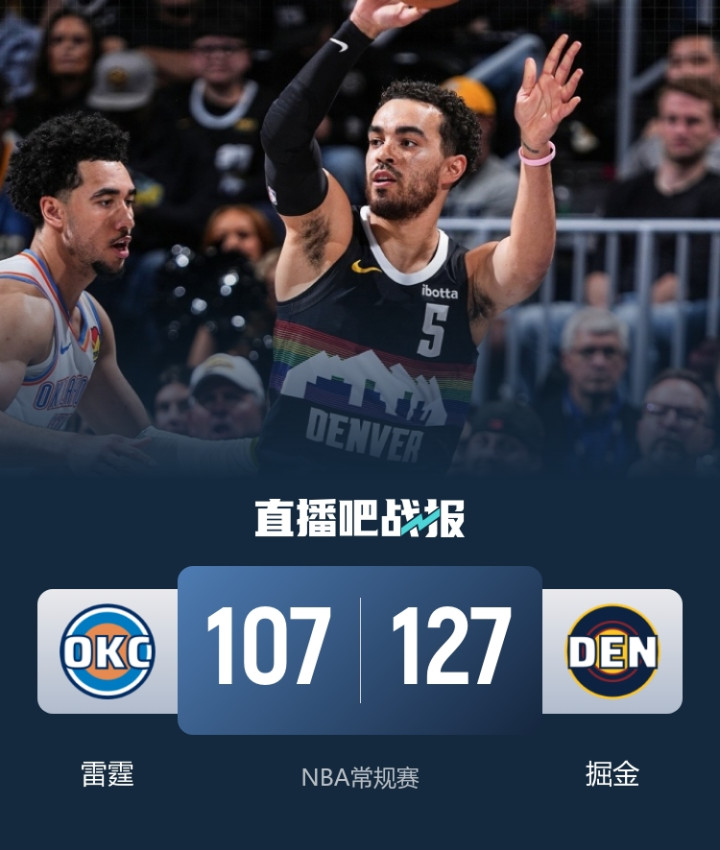 湖人争三彻底没戏了! 掘金127-107吊打雷霆, 基本锁定西部第三!