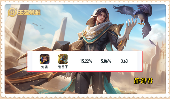 变异后的刘备数据非常豪华,目前他在全段位的胜率为56.5%,更关键的是,当刘备和鬼谷子搭档的时候,其胜率还能得到5.06%的提升,这真的非常夸张。为什么他们两个组合起来会这么强呢?