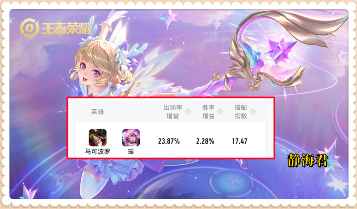 根据营地最新的数据,马可波罗和瑶的搭配指数高达17.47,只要同时选到他们两个,最终胜率就会增加2.28%。为什么瑶和马可波罗在一起会这么搭配呢?原因主要有三个: