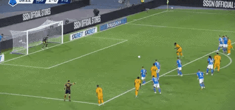 第77分钟,洛博特卡传球,斯皮纳佐拉禁区前沿左侧内切,禁区弧顶前右脚低射,皮球飞入球门左侧,比萨门将扑救不及,那不勒斯再次获得领先,2-1。