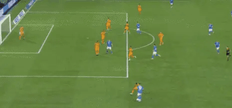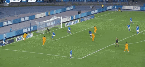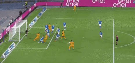 第39分钟,那不勒斯前场进攻,吉尔摩接到队友禁区左侧的倒三角传球,禁区中路左脚抽射,皮球经过折射飞入网窝,那不勒斯打破僵局。