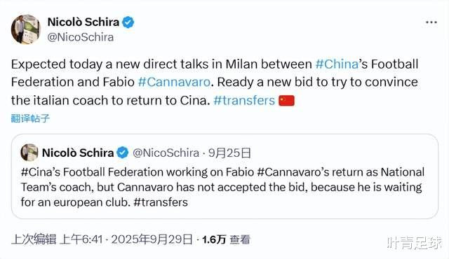 29日,中国足协代表抵达意大利米兰,将与卡纳瓦罗直接谈判。中国足协送上新的报价,全尤文记者Di Natale透露,双方接近达成协议,卡纳瓦罗有望重返中国执教!