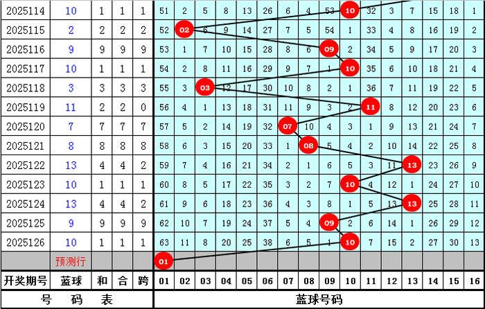 上期开出蓝球号码10。
